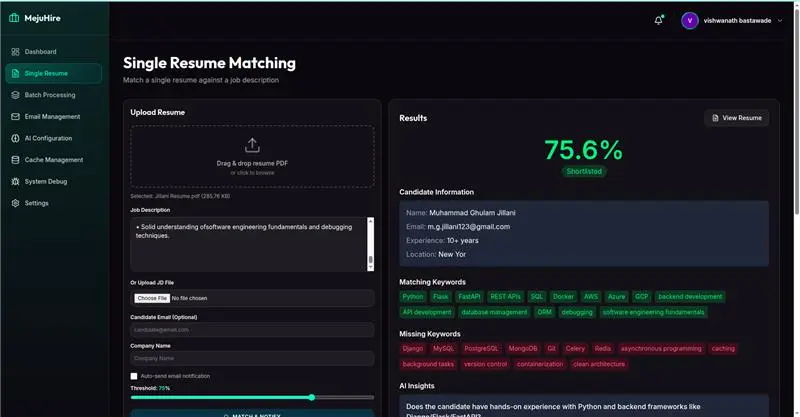 MejuHire uses advanced algorithms to compare resumes against job descriptions, ensuring candidates are evaluated based on actual role fit rather than keywords alone. This results in higher-quality shortlists and improved hiring accuracy.